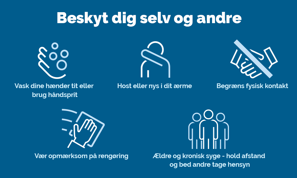 - Husk god håndhygiejne - vask hænder og brug håndsprit