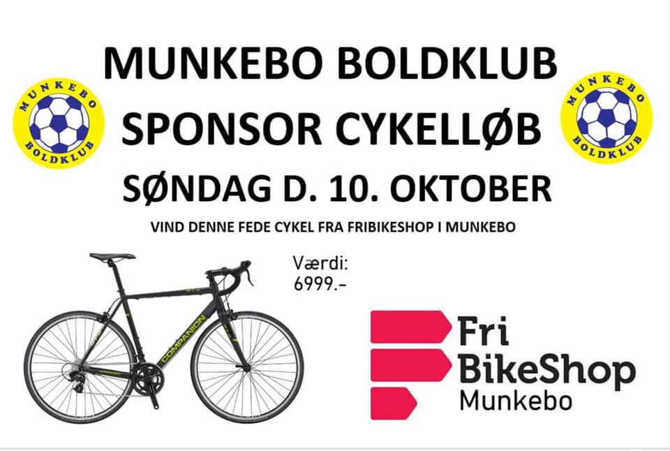 På søndag afholder Munkebo Boldklub sponsor cykelløb. Vi cykler i en time på en rute ved Garbækstofte (industriområdet i Munkebo)